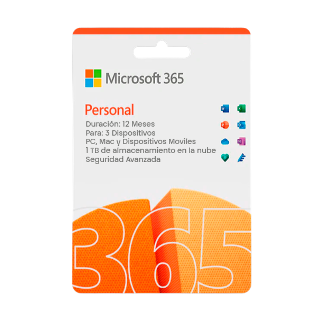 Microsoft 365 Personal es la solución ideal para un solo usuario que busca productividad, seguridad y almacenamiento en la nube. Con tu suscripción de 12 meses, podrás disfrutar de aplicaciones premium siempre actualizadas y 1 TB de OneDrive con tu correo personal.